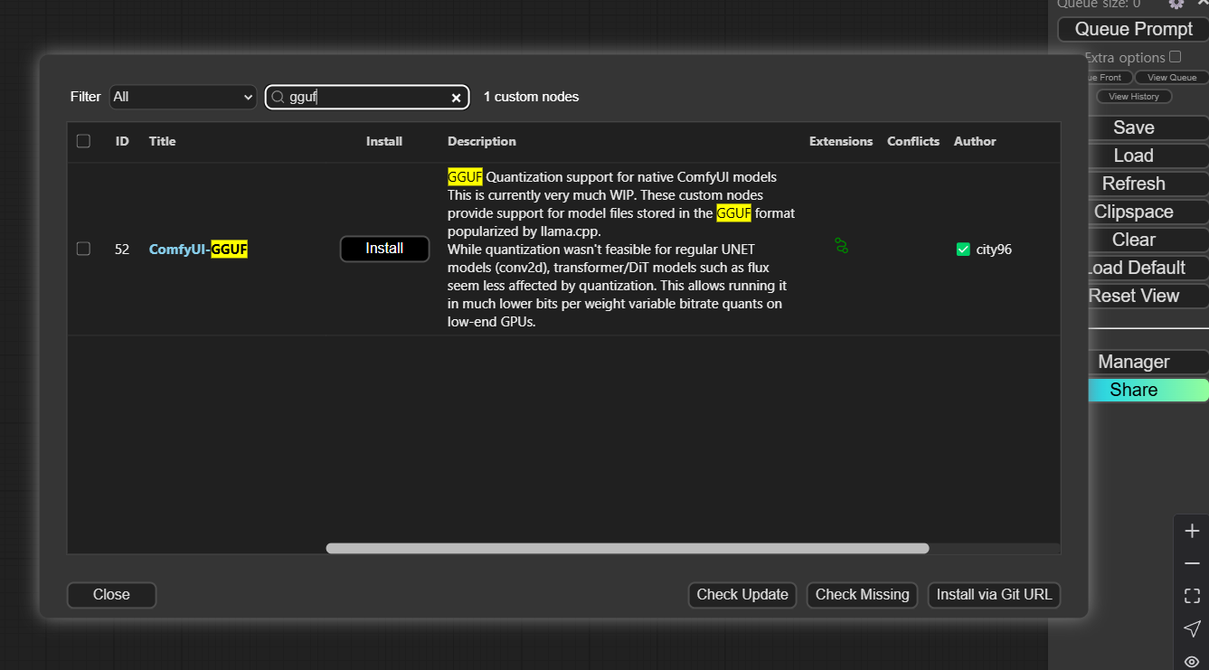 gguf 사용을 위한 Custom Node 설치