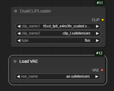 Unet Model 은 8bit 받은거 선택 하고 DualClipLoader 노드와 Load VAE 노드 추가 해서 아래와 같이 셋팅 함