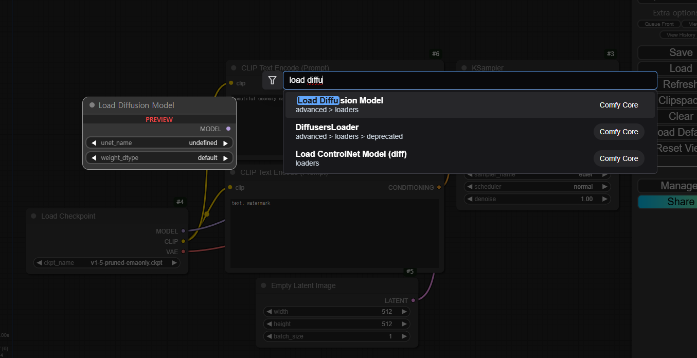 빈 곳에서 더블클릭 -> load diffusion model