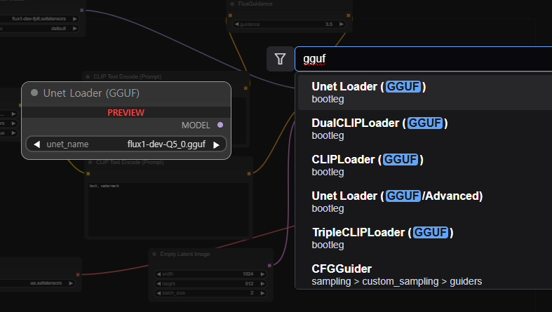gguf 사용을 위한 Custom Node 설치