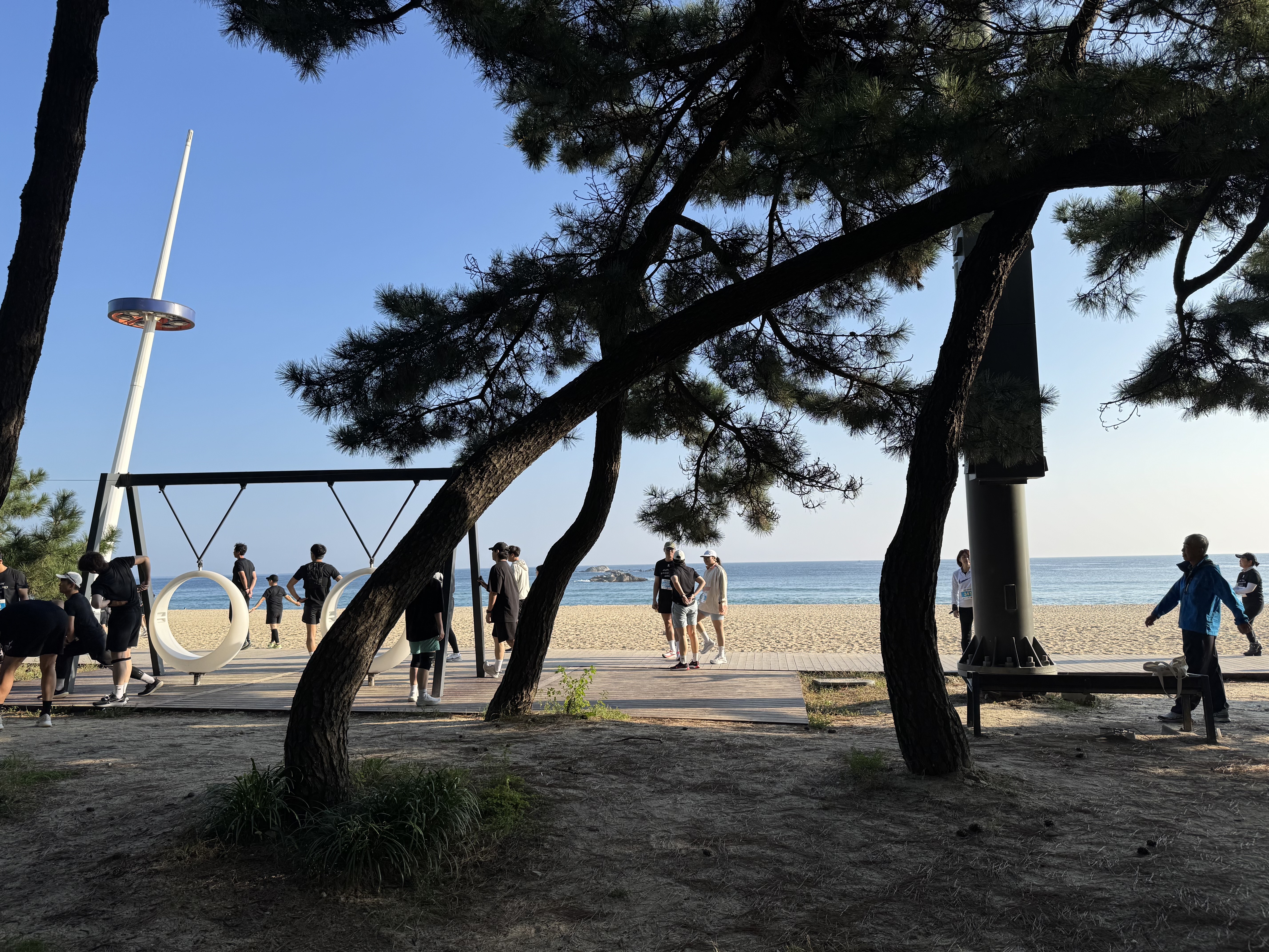 바다 앞에서 몸을 풀 수도 있고 달리는 내내 소나무와 멋진 해안가가 힘을 내게 해주었다.