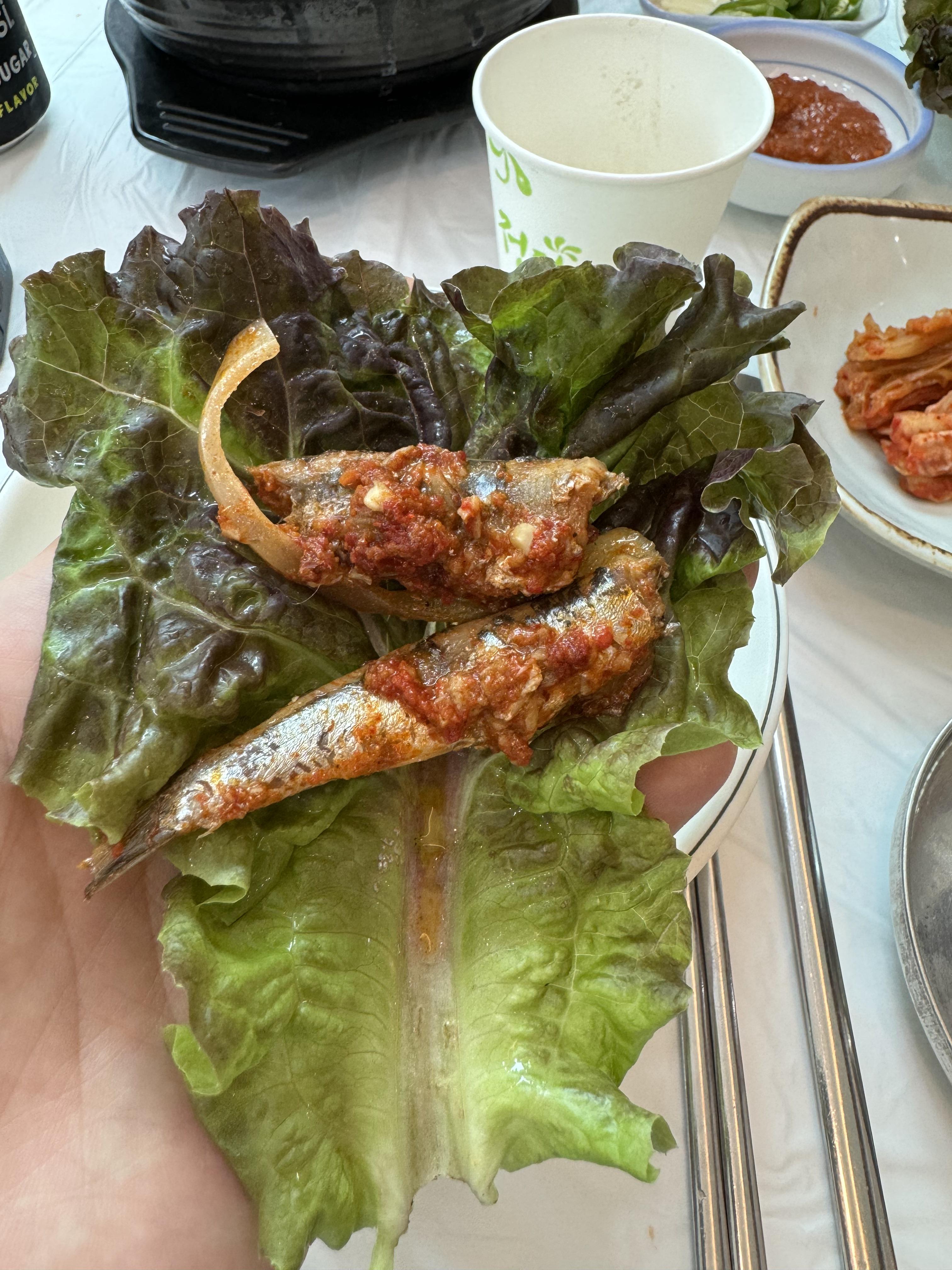 해산물에 친숙하지가 않아서... 원래 이렇게 멸치가 컸나;;