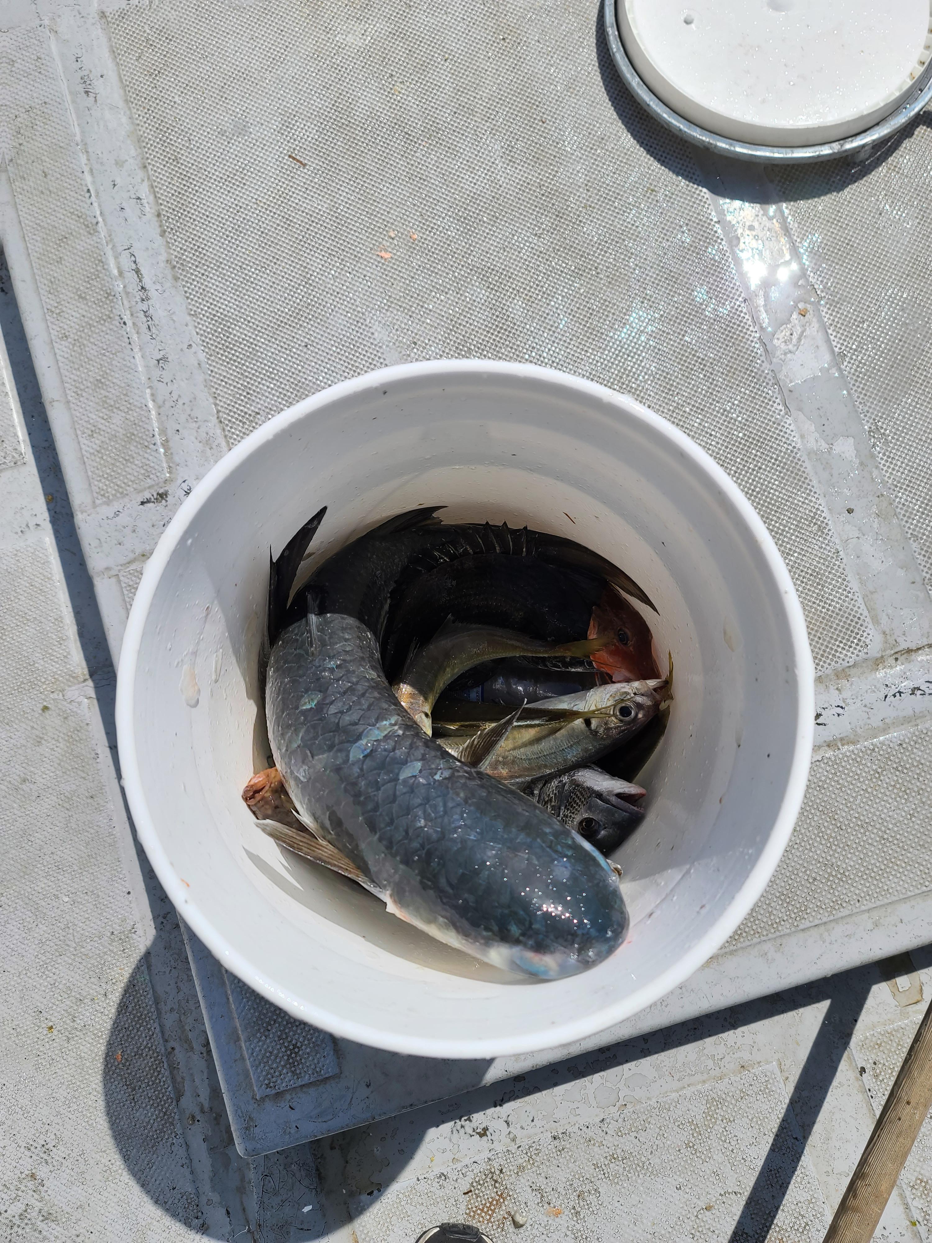 동료들이 잡은 거대한 숭어 몇마리와 함께~