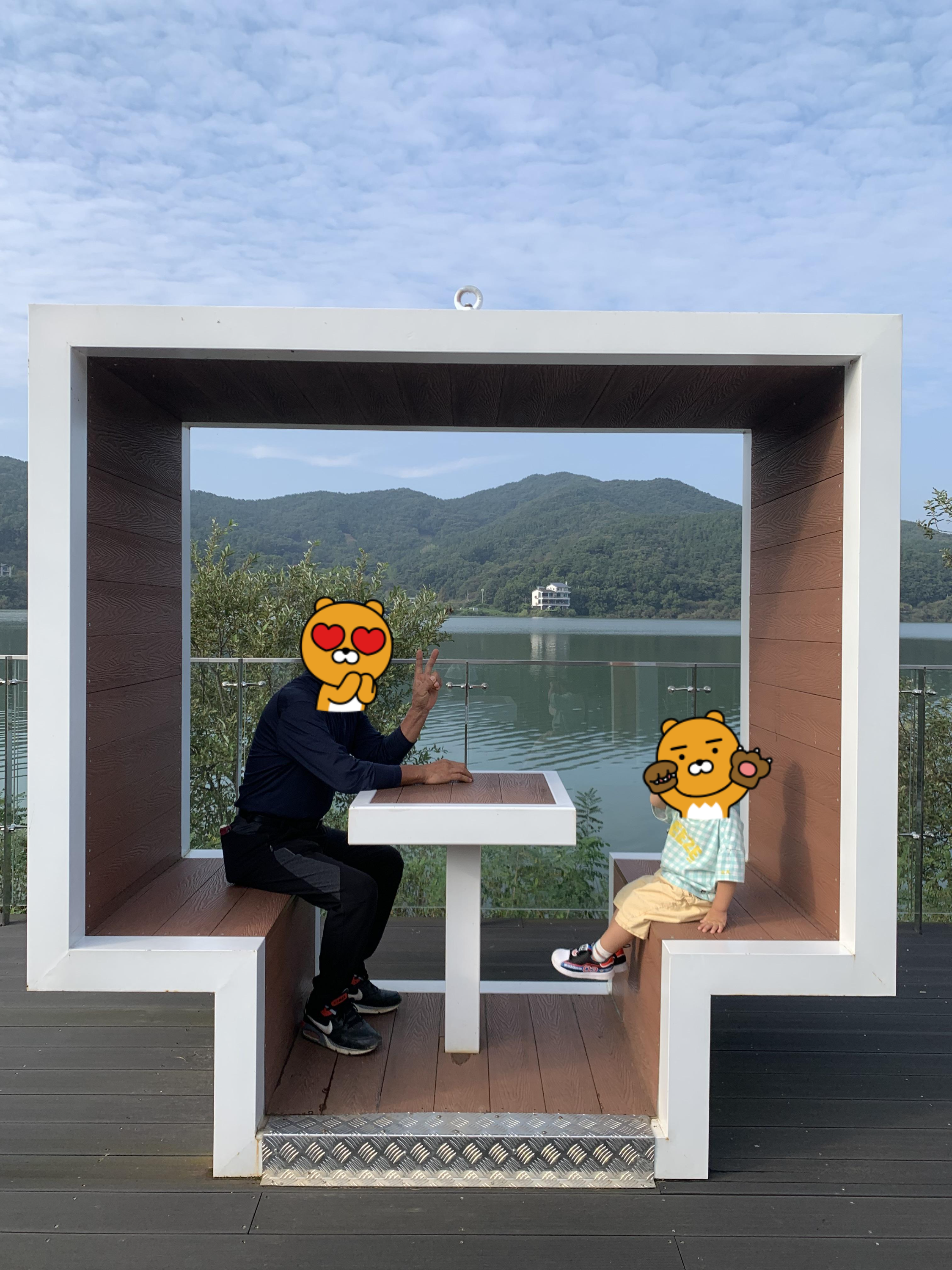 땀을 식히며 전망대를 다시 조망하는 멋진 뷰와 커피한잔의 여유를 즐길 수 있다.