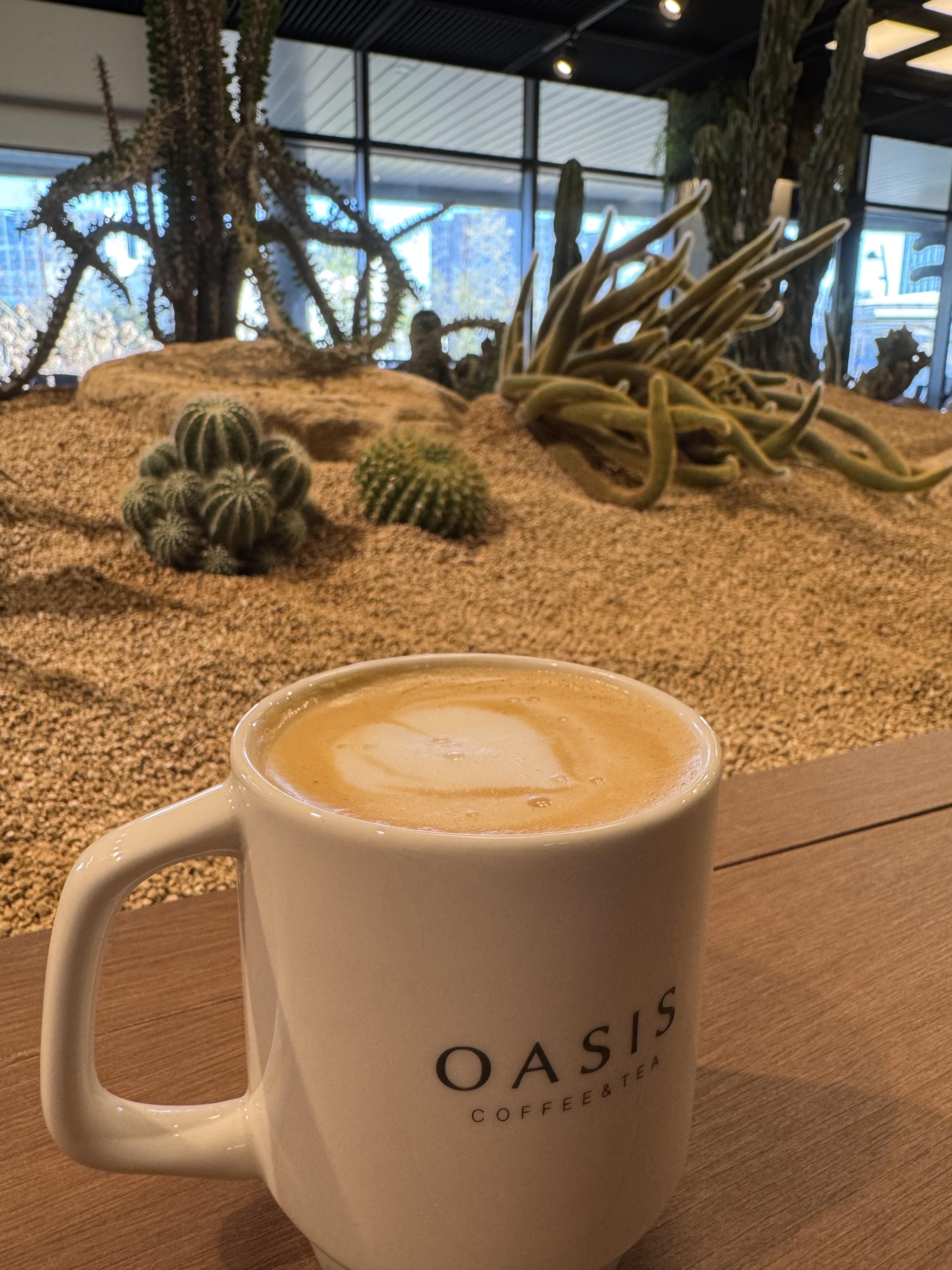 정말 오아시스 느낌 나는 자리에서 라떼 한잔~