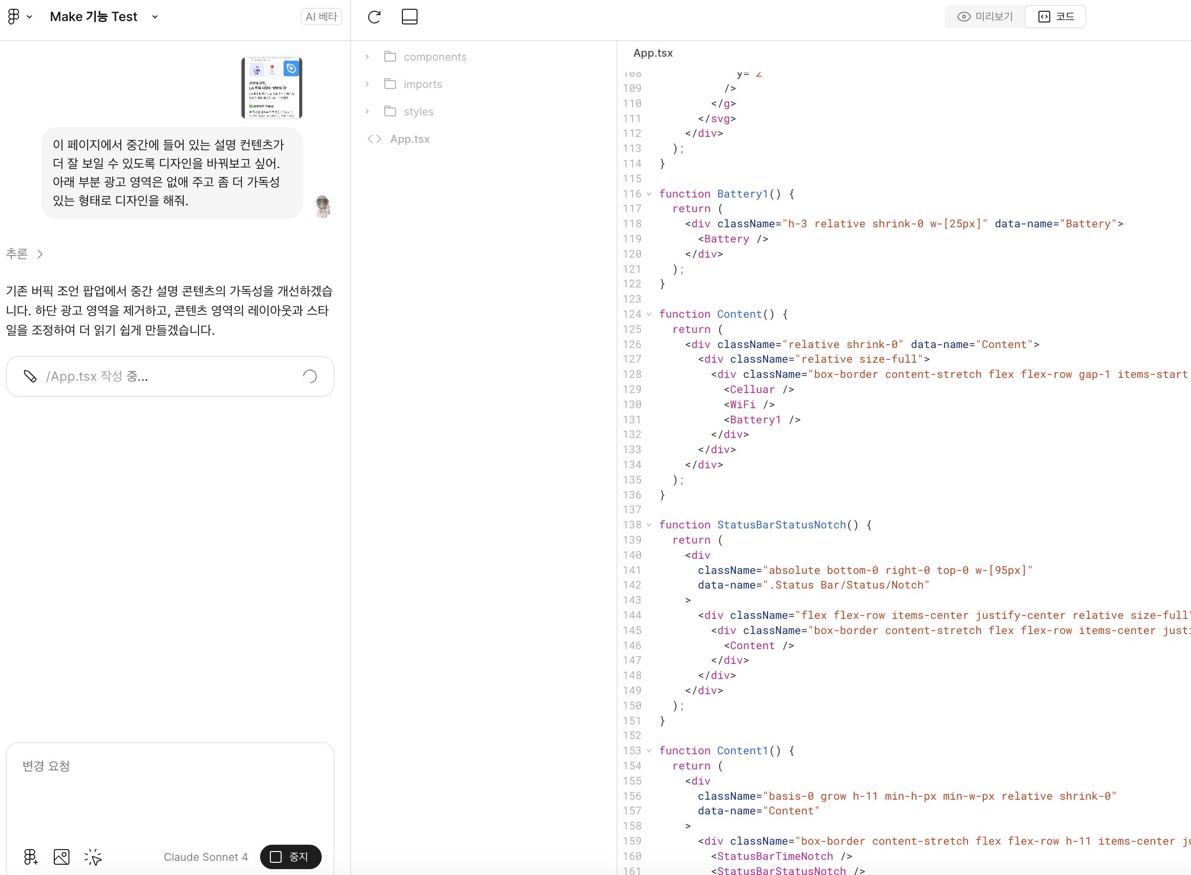 피그마에 있는 기존에 디자인 되어 있던 프레임을 하나 복붙 해놓고 개선 해달라고 요청 하니