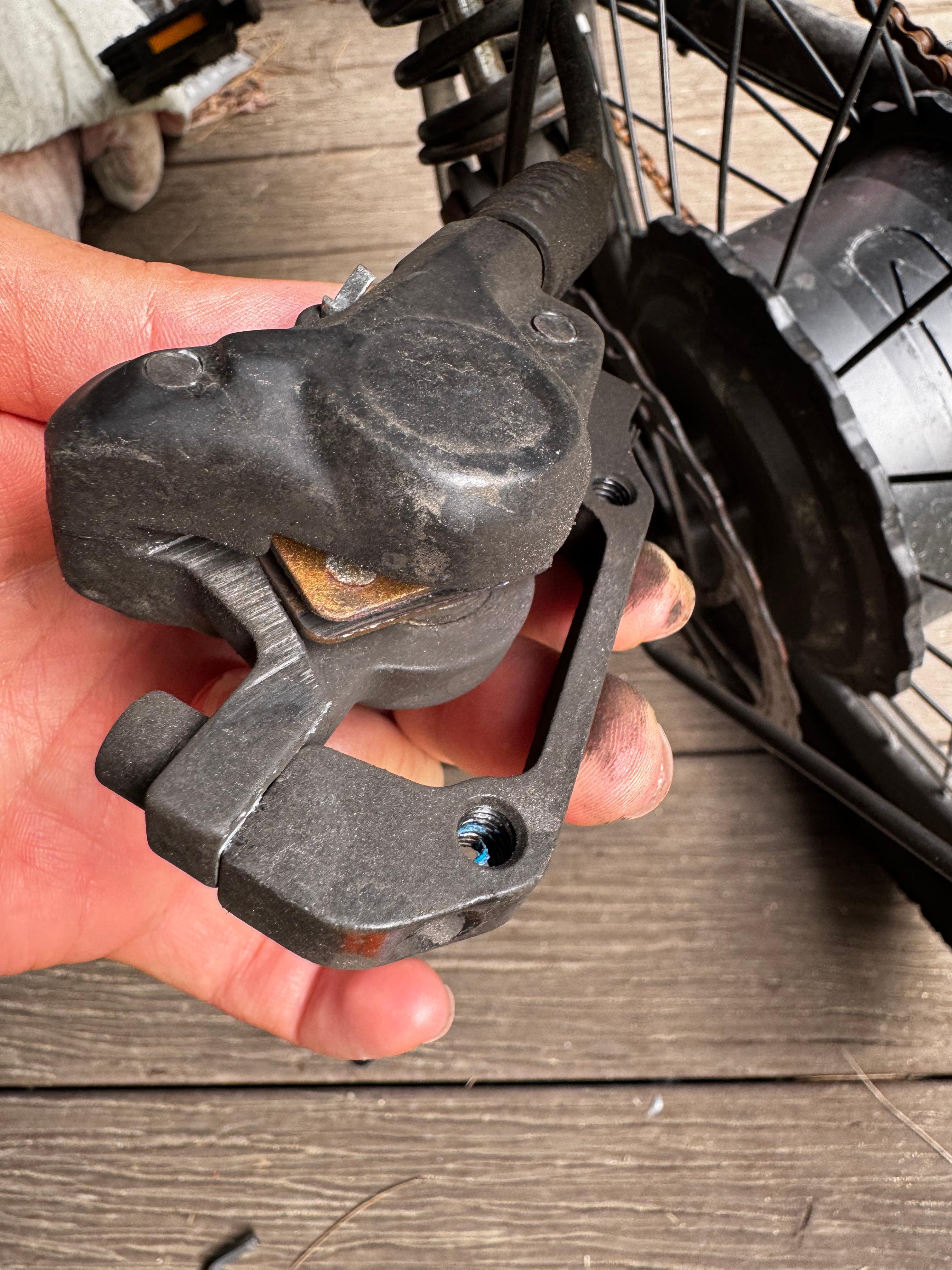 갈려나간 브레이크 패드를 아래로 뺄 수 있다. 잘 안빠진다;;