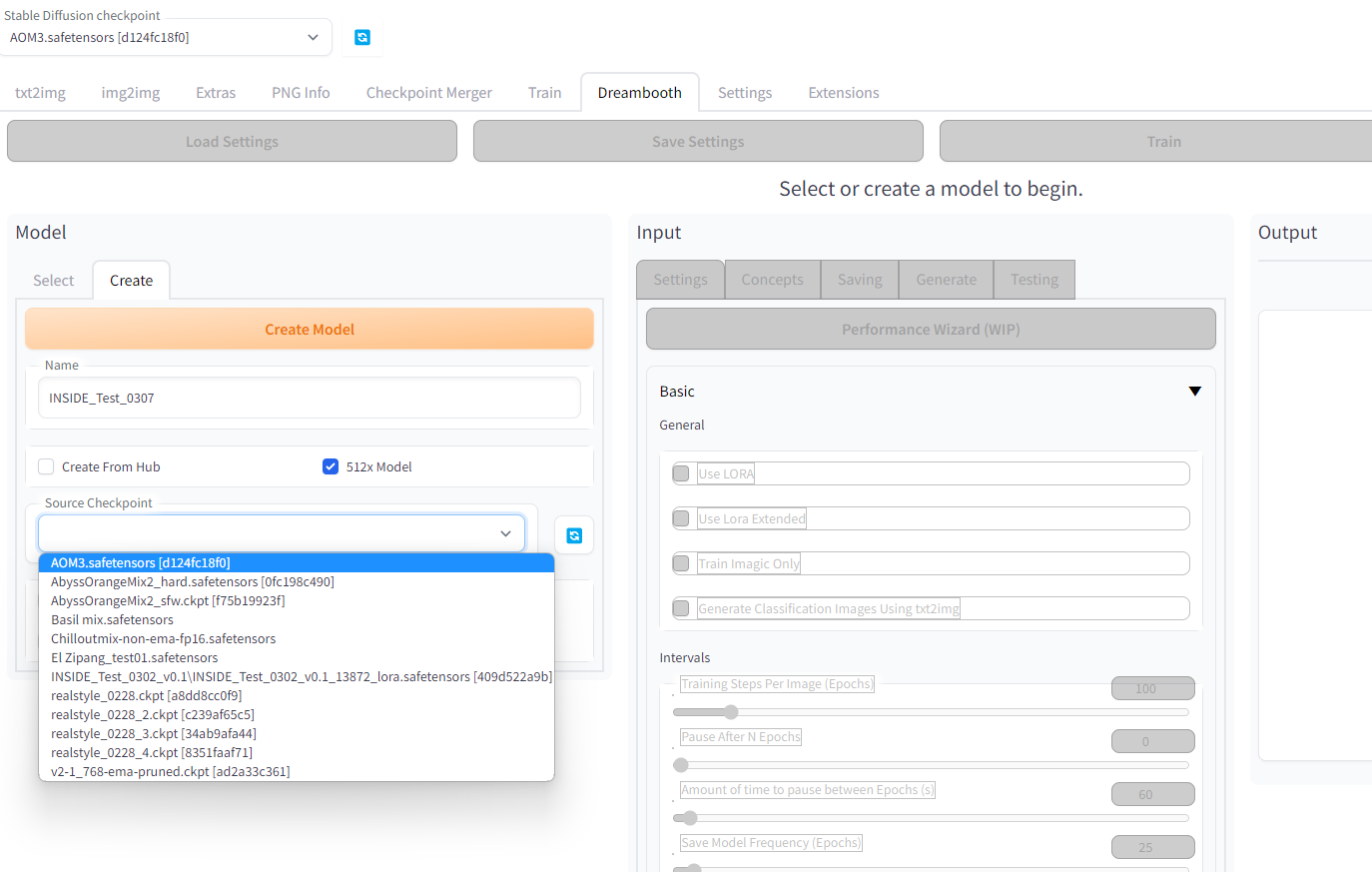 1. Dreambooth extention 설치 후 모델 생성