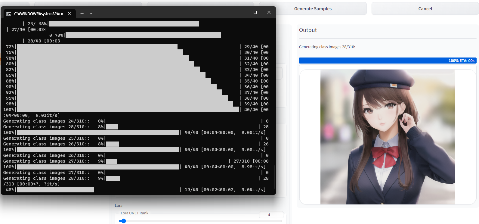 sample을 생성 하는데 원하는 이미지가 잘 나오는지 확인하고 계속 진행 한다.