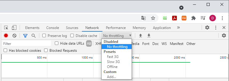 크롬 브라우저에서 강제로 네트워크 느리게 조정 하는 방법
