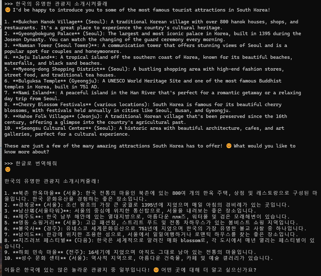 가끔 영어로 답하긴 하지만 아래처럼 한글이 나옴