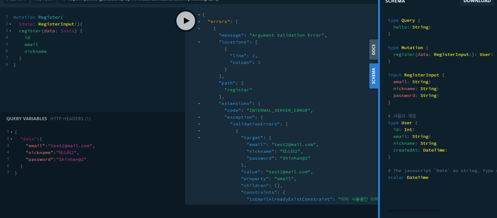 1. DB 연결 (사용자 권한 체크) -> 2. Apollo 서버 실행 -> 3. GraphQL 함수 모듈 실행