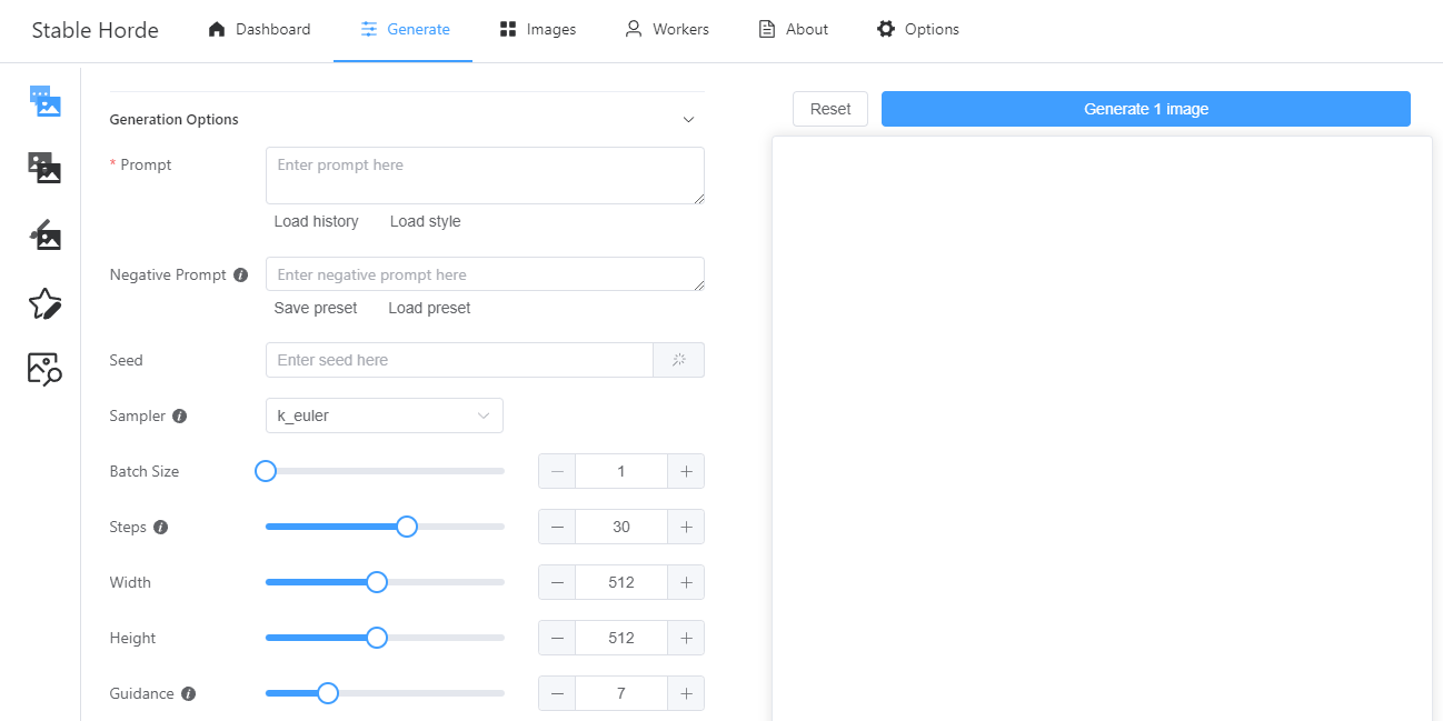 이 곳은 Stable Diffusion 웹 페이지와 유사하게 생긴 곳이다. (Stable Horde)