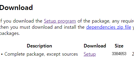 일단 여기 들어가서 제일 첫번째꺼 다운로드 후에 exe 파일 실행해서 설치 하기