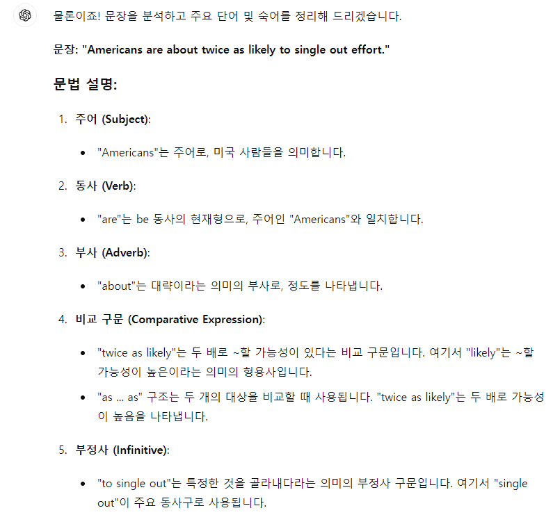 | [chatgpt 영어] paraphrase 와 영어 검수 및 교정 프롬프트 (0) | 2024.05.06 |