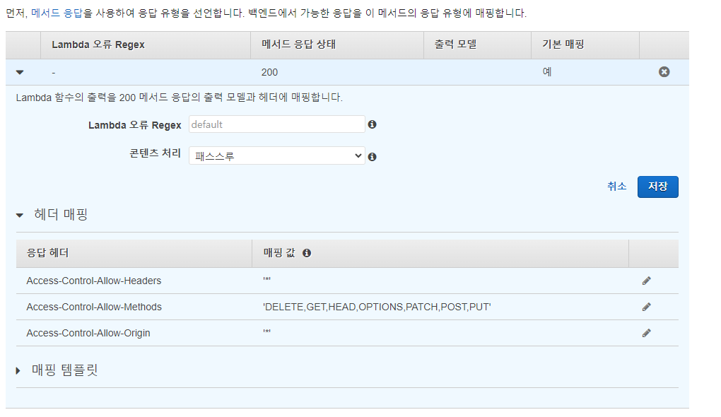 메서드 응답 / 통합 응답 을 클릭한다.