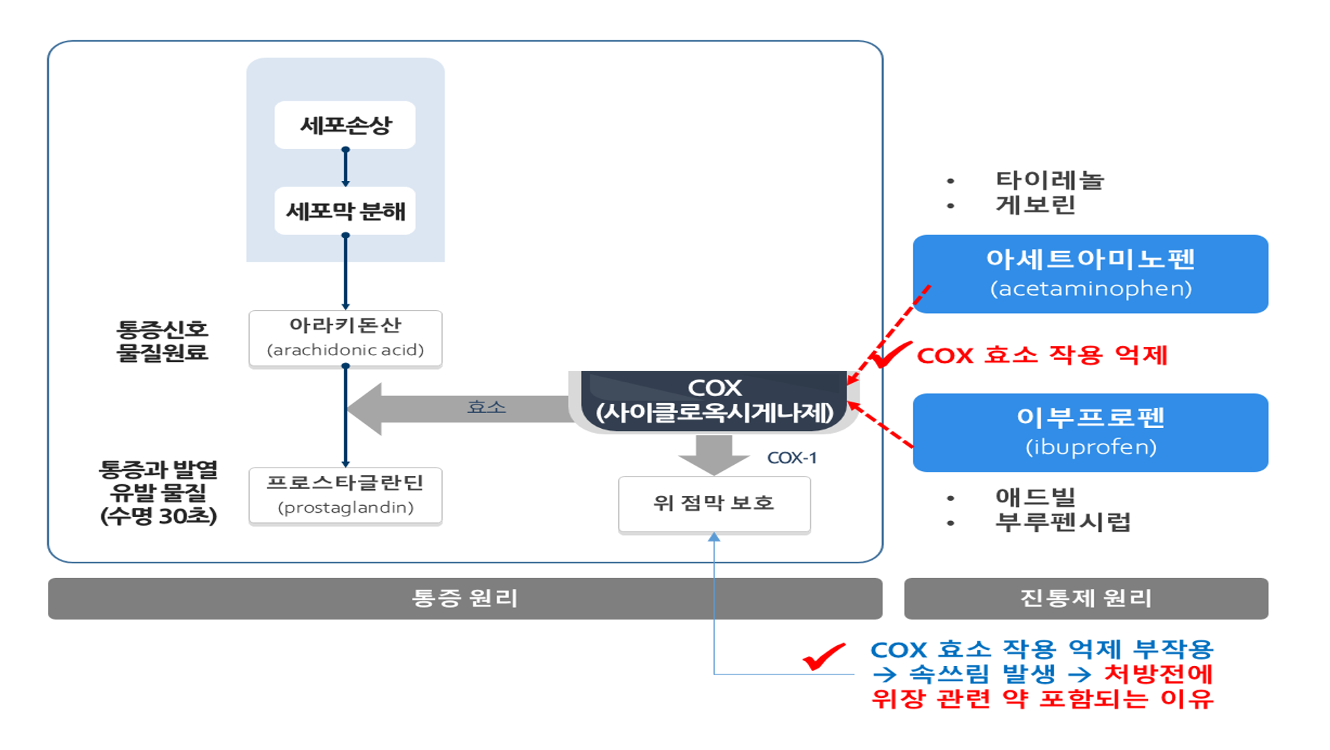 타이레놀은 안전한 약이라고하는 말도 있고 해서 진통제의 원리를 알아봤다.